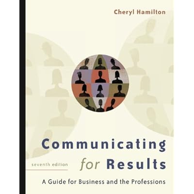 Review "…the text is wonderful…the text is simple to read with an exceptional application to real-world situations. The PowerPoint slides are fabulous!""I would describe the Hamilton text as solid, well written, and appropriately scholarly. I think Hamilton has combined a traditional format with a good organization, but has avoided being 'stuffy' and 'dry'.""I'm impressed with the total package that is COMMUNICATING FOR RESULTS: A GUIDE FOR BUSINESS AND THE PROFESSIONS. …Anyway, what's not to like? It's all in there in Hamilton.""I would recommend this text to others." Read more About the Author Cheryl Hamilton, an author well known for her writing style and award-winning teaching, understands the importance of communication as a lifelong skill. Also the author of COMMUNICATING FOR RESULTS, she has conducted a number of research studies, including one published in the COMMUNITY COLLEGE JOURNAL OF RESEARCH AND PRACTICE. Dr. Hamilton has presented more than 32 papers at professional conventions, including those sponsored by the National Communication Association, Southwest Educational Research Association, Western Communication Association, and Texas Speech Communication Association. She has conducted seminars for groups such as the National Property Management Association, Bell Helicopter Textron, U.S. Postal Department, North Central Regional Police Academy, and LTV Aerospace. A native of Illinois, she received her bachelor's degree from Eastern Illinois University; her master's degree from Purdue University in West Lafayette, Indiana; and her doctoral degree from the University of North Texas in Denton. Read more